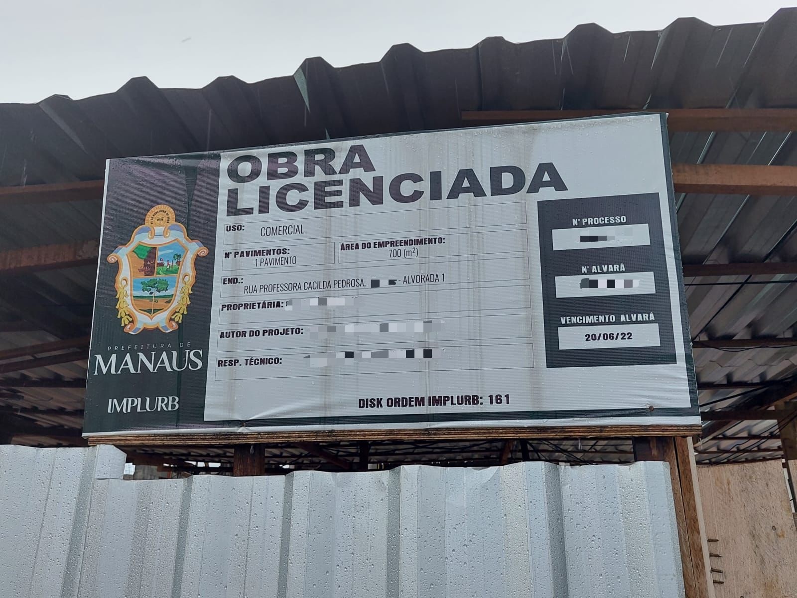 Uma denúncia levou a fiscalização urbana da Prefeitura de Manaus a embargar uma construção comercial na rua professora Cacilda Pedrosa, Alvorada, zona Centro-Oeste, nesta terça-feira, 15/3. A obra estava com o prazo do alvará de construção vencido há mais de 2 anos e, conforme o artigo 30 do Código de Obras de Manaus (lei complementar n° 003/2014), o mesmo perdeu sua validade para execução. Na ocasião também foi observado que o proprietário estava fazendo uso de uma falsa placa de obra.
